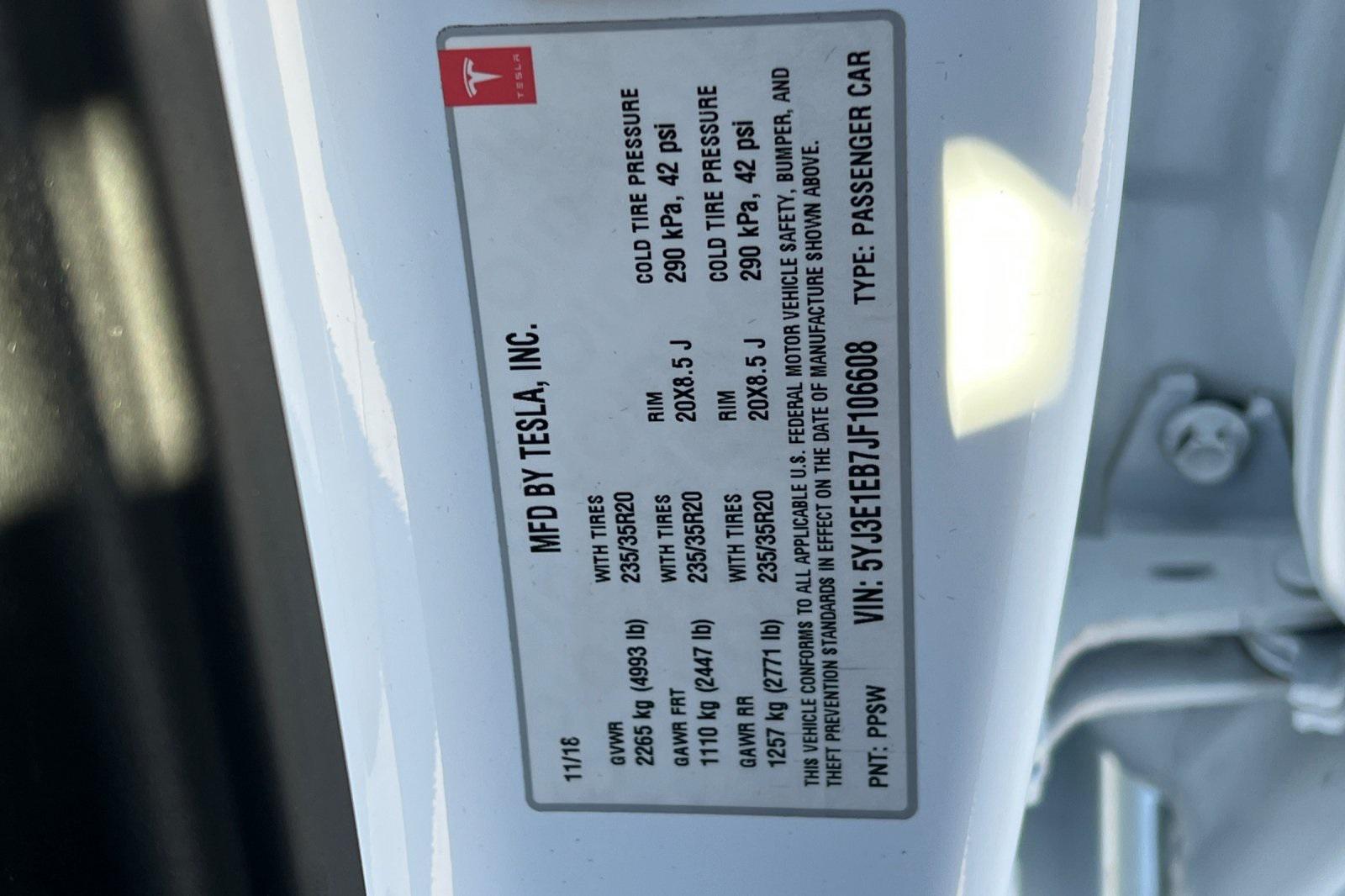 CARFAX One-Owner. Clean CARFAX. Pearl White Multi-Coat 2018 Tesla Model 3 AWD 1-Speed Automatic Electric Motor Auto Lane Change, Autopark, Autosteer, Enhanced Autopilot, Heated front seats, Heated rear seats, Lane Departure Warning System, Navigation System, Rear Parking Camera, Spoiler, Traffic-Aware Cruise Control, Wheels: 20"" x 8.5"" Performance.Recent Arrival! Odometer is 35545 miles below market average!