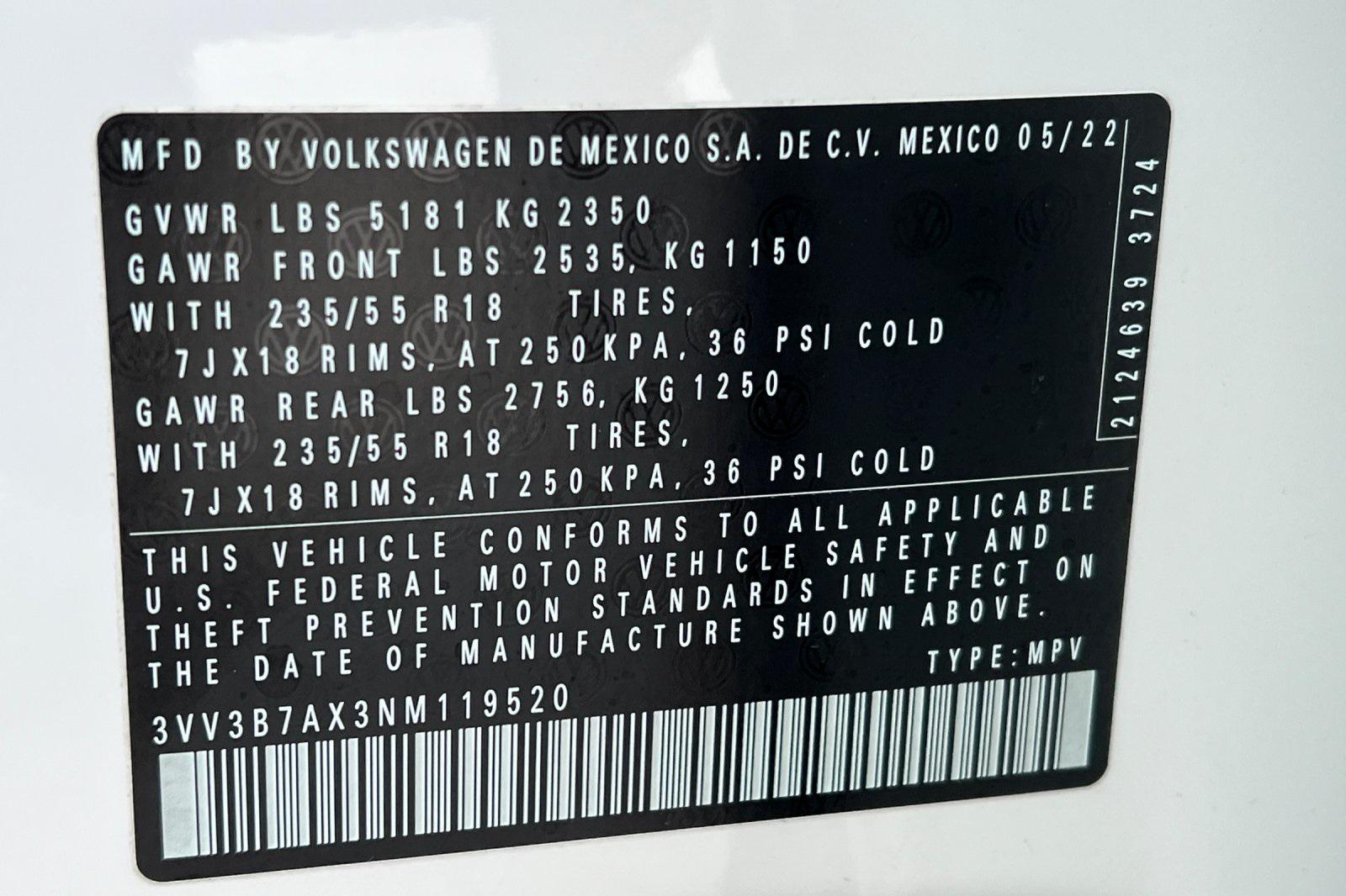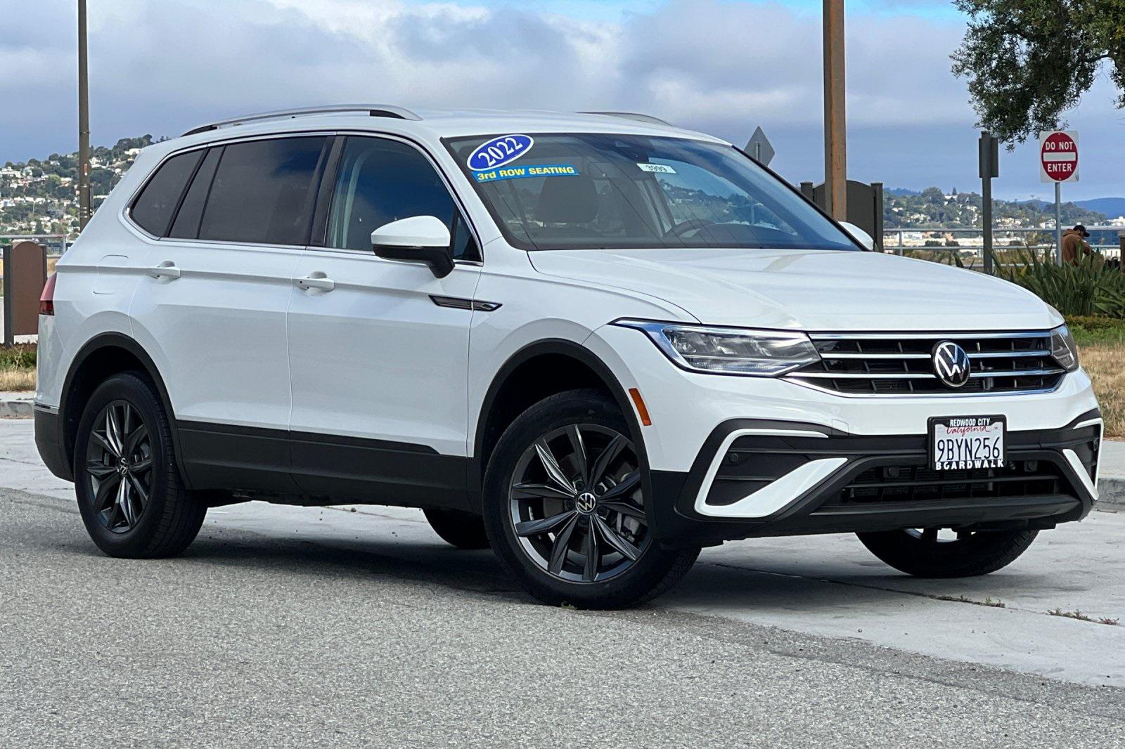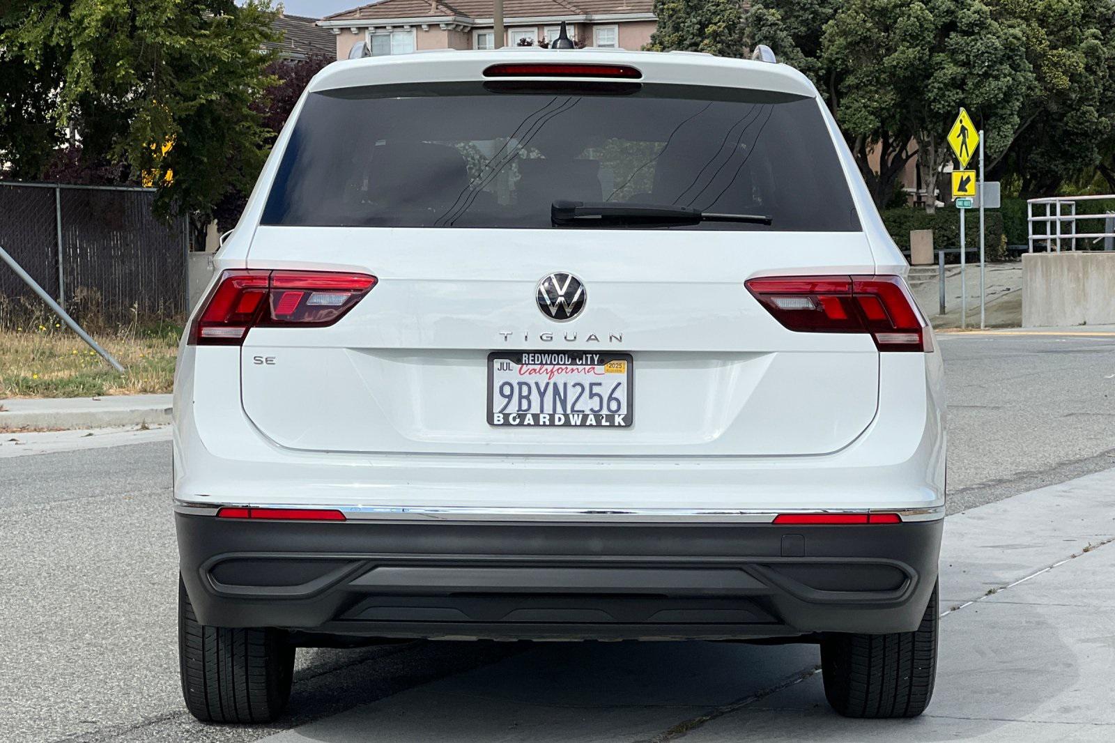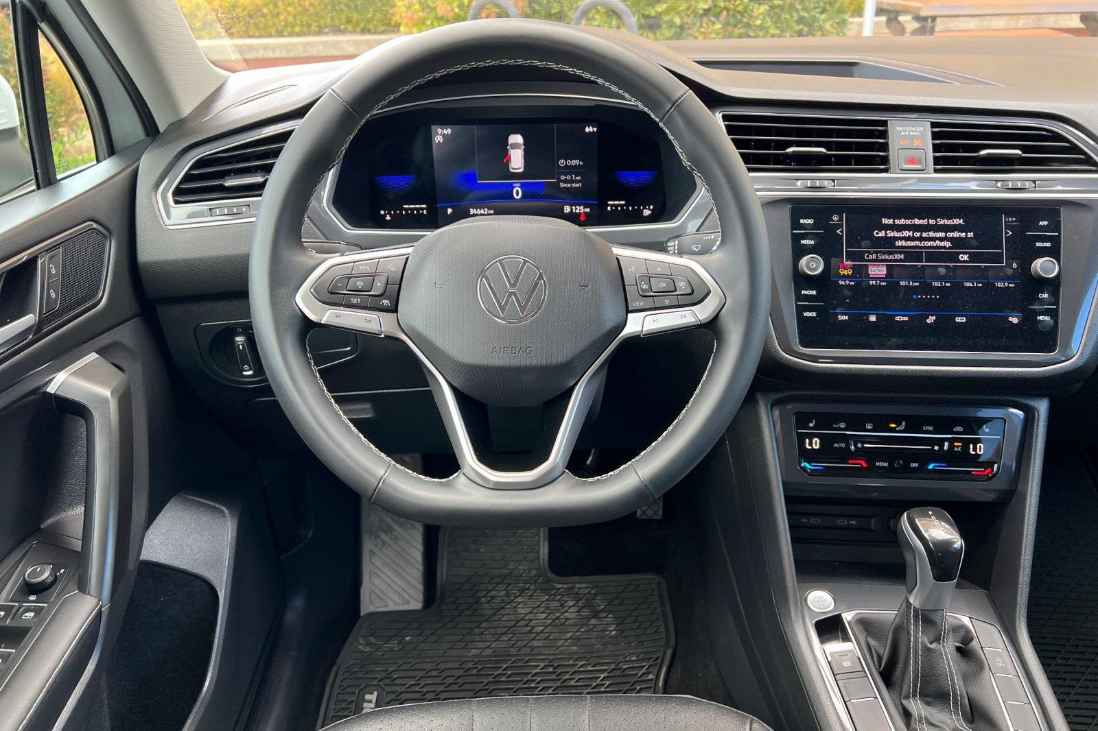 CARFAX One-Owner. Pure White 2022 Volkswagen Tiguan 2.0T SE FWD. Powered with 8-Speed Automatic with Tiptronic and 2.0L TSI Engine. Equipped with 3rd row bench seats, Brake assist, Car-Net, Heated Front Comfort Seats, Power Liftgate, Rear Parking Camera, Spoiler, and 18"" Dark Graphite 10-Spoke Alloy Wheels.Odometer is 2618 miles below market average!