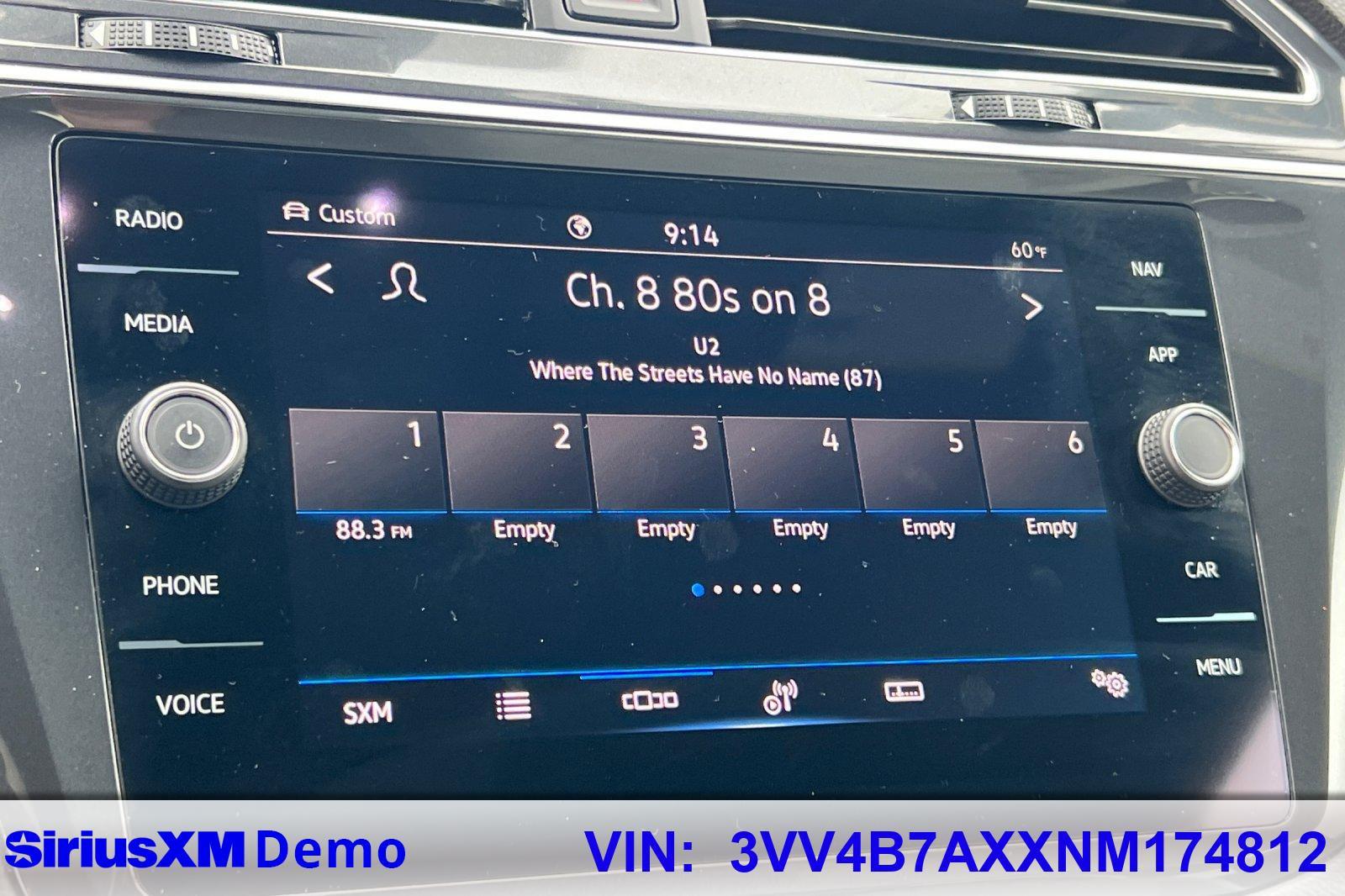 CARFAX One-Owner. Clean CARFAX. 2022 Volkswagen Tiguan 2.0T SEL R-Line AWD. Powered by an 8-Speed Automatic with Tiptronic and 2.0L TSI DOHC Engine. Equipped with Car-Net (subscription needed), Heated/Ventilated Front Comfort Sport Seats, Perforated Vienna Leather Seating Surfaces, Power Liftgate, Power moonroof, Navigation, Roof rack: rails only, Spoiler, and 20"" Machined Black Alloy Wheels.Recent Arrival! Odometer is 17029 miles below market average!