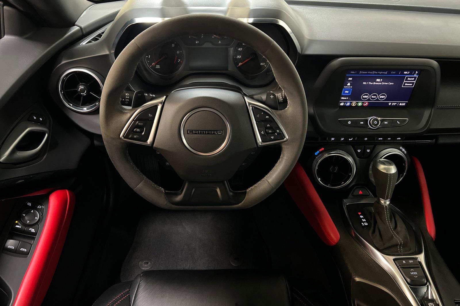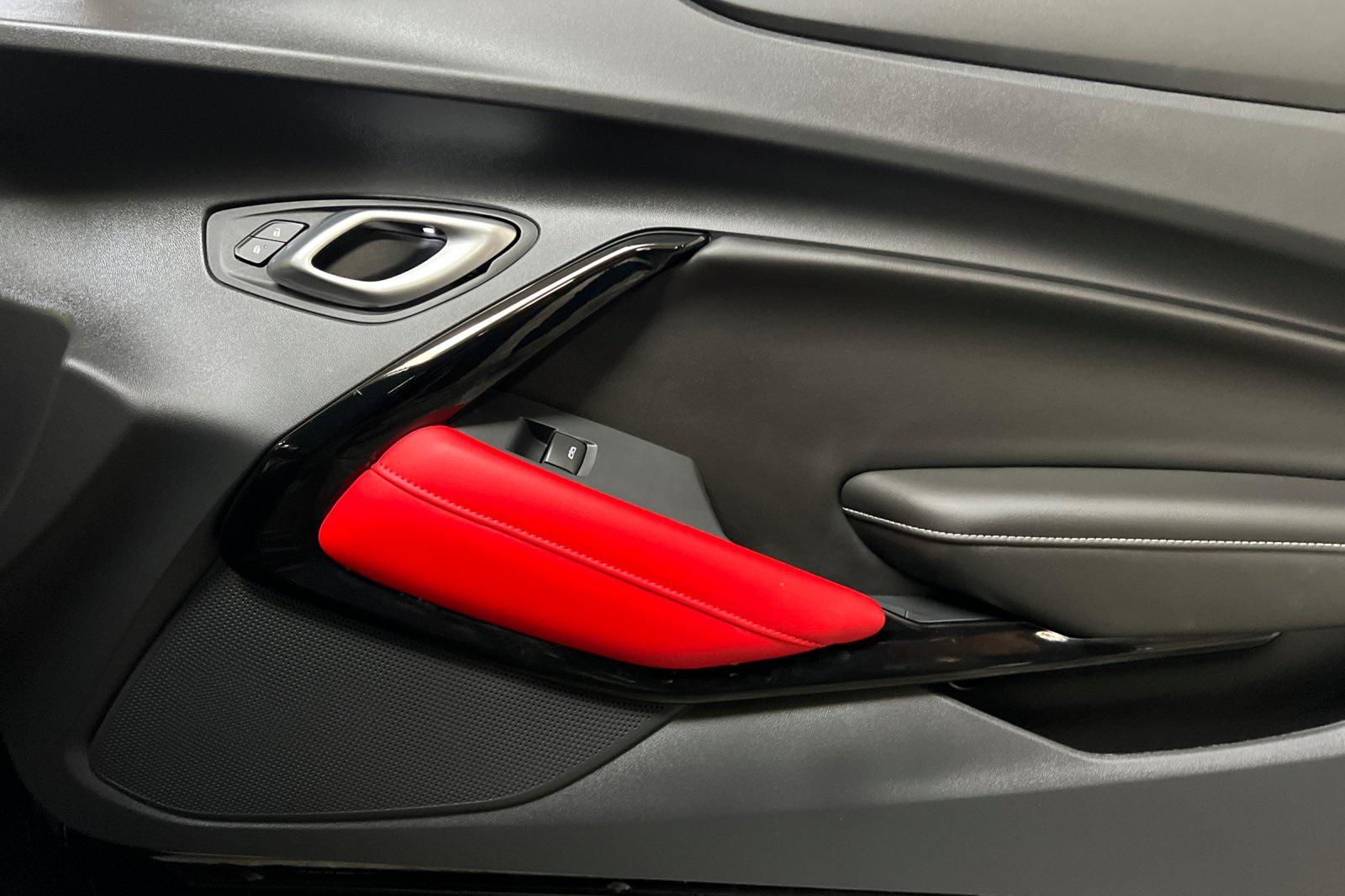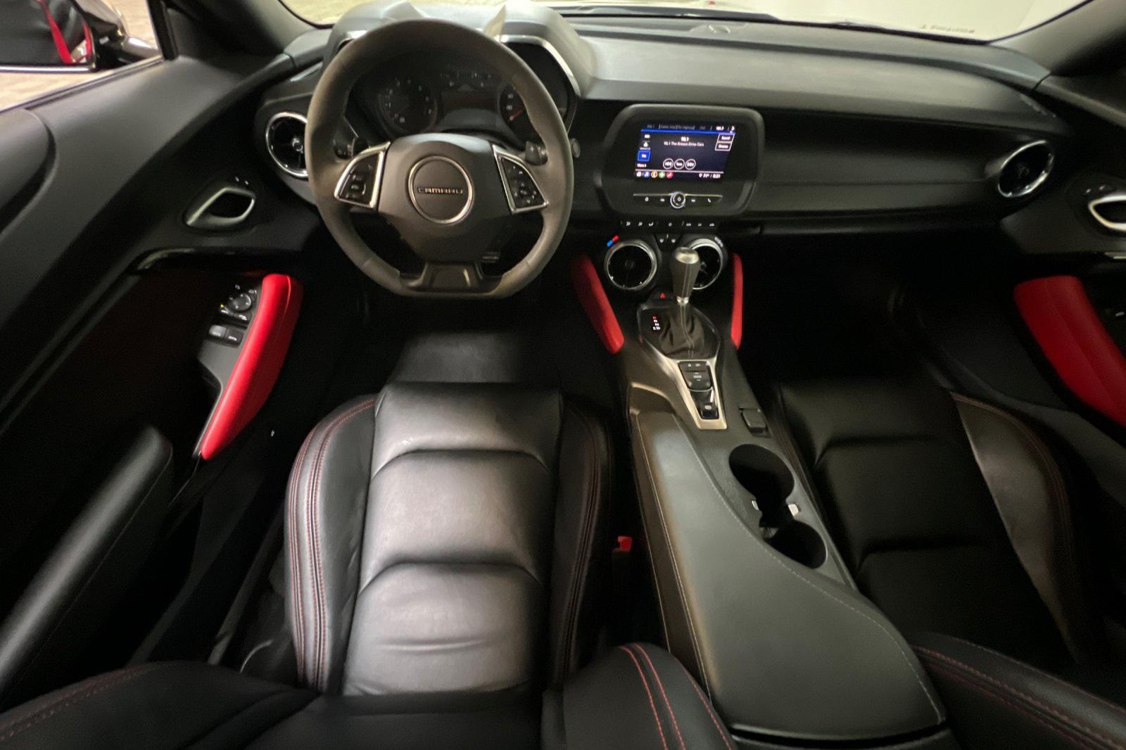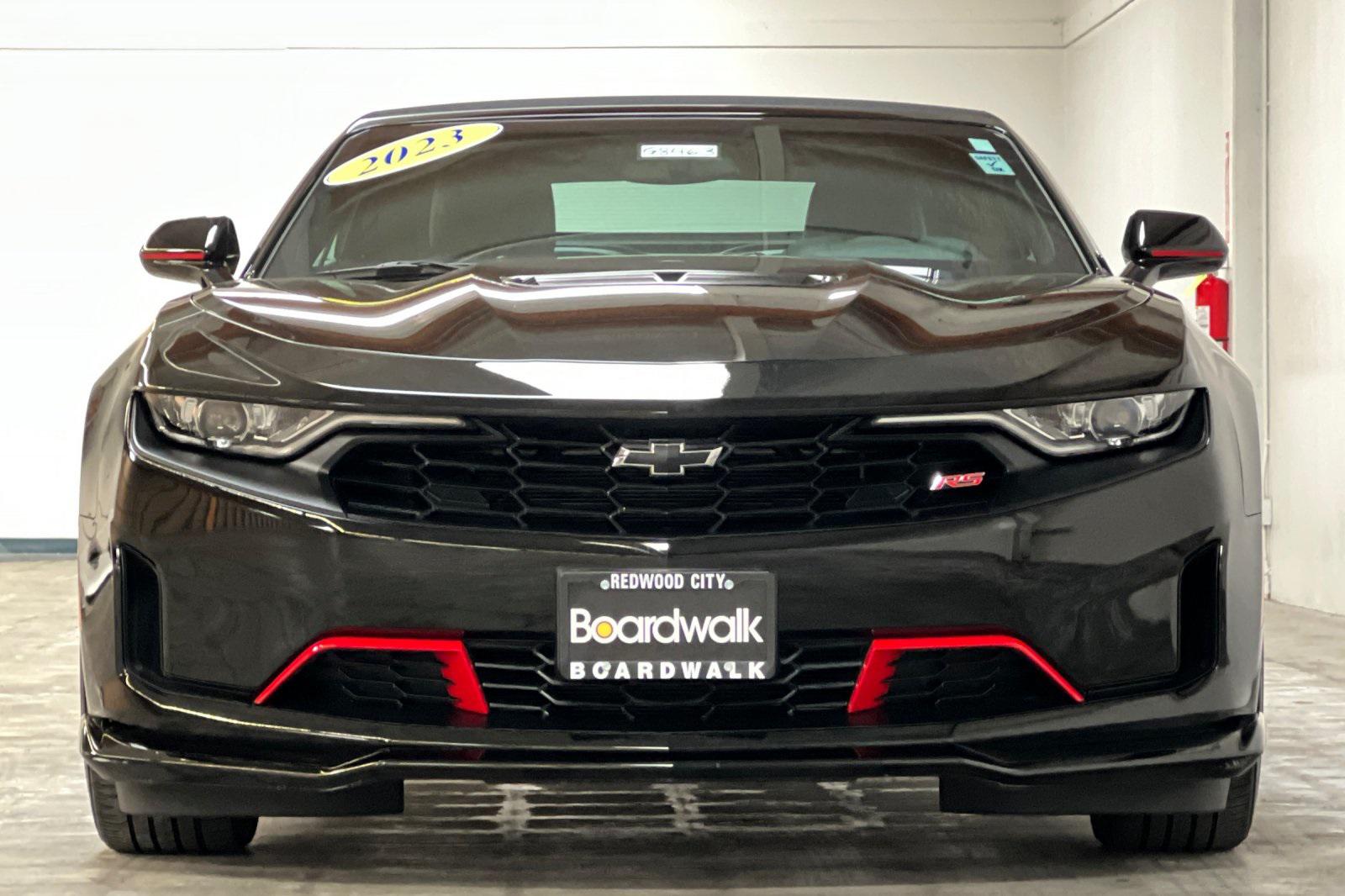 CARFAX One-Owner. Black 2023 Chevrolet Camaro LT1. Powered by a 10-Speed Automatic and 6.2L V8. Equipped with Apple CarPlay/Android Auto, Black Camaro Emblem Fender Badge w/Red Outline, Bluetooth® For Phone, Dark Tint LED Tail Lamps, Lower Grille w/Red Hot Inserts, Rear Parking Camera, Red Knee Pads, Red Seat Belt Color, Red-Painted Calipers, Redline Edition, Redline Edition Graphics, Remote Vehicle Starter System, RS Package, Spoiler, Sueded Flat-Bottom 3-Spoke Steering Wheel, Sueded Microfiber-Wrapped Shift Knob, and 20"" Black-Painted Aluminum w/Red Accents Wheels.Recent Arrival!