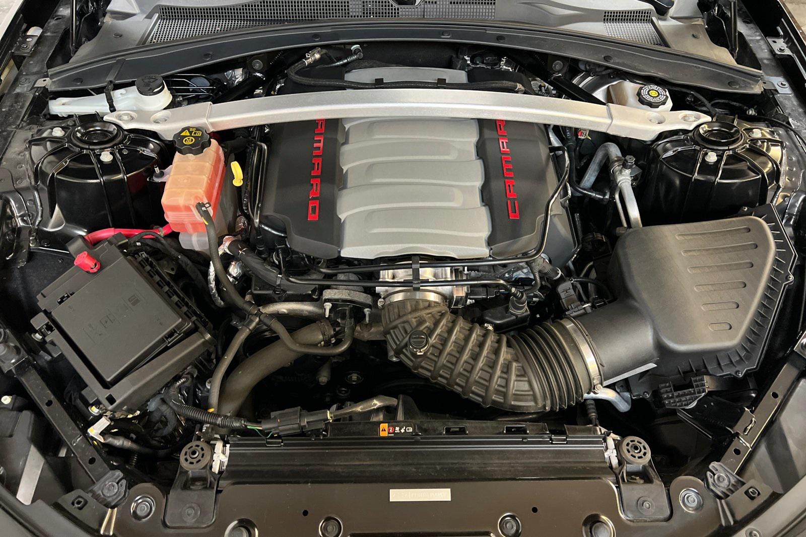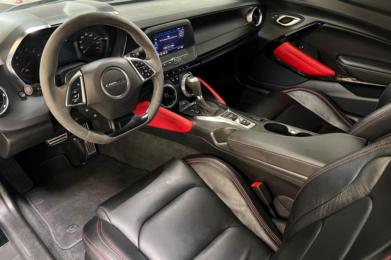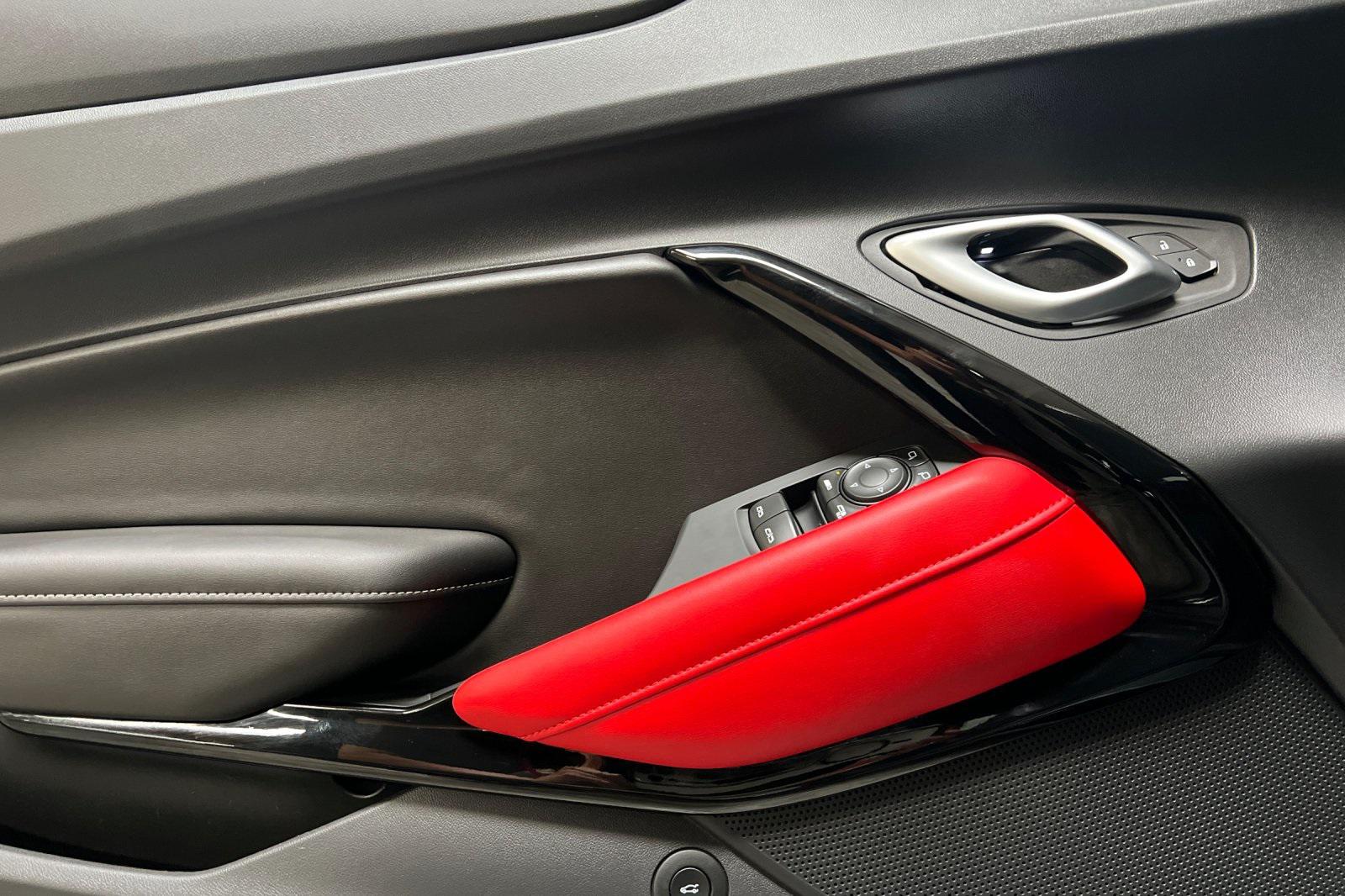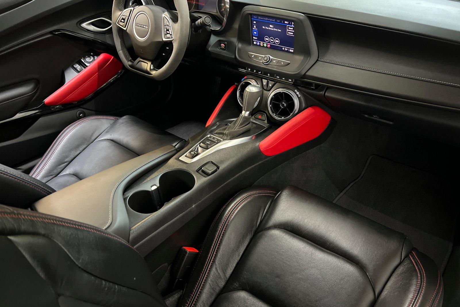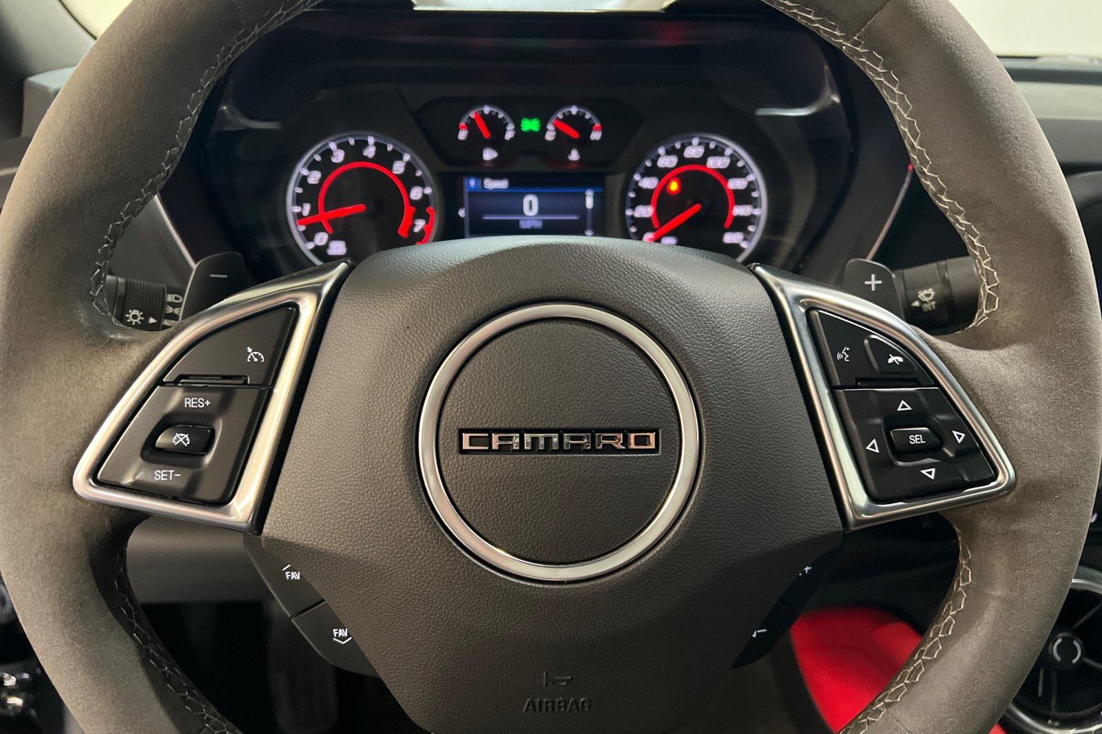 CARFAX One-Owner. Black 2023 Chevrolet Camaro LT1. Powered by a 10-Speed Automatic and 6.2L V8. Equipped with Apple CarPlay/Android Auto, Black Camaro Emblem Fender Badge w/Red Outline, Bluetooth® For Phone, Dark Tint LED Tail Lamps, Lower Grille w/Red Hot Inserts, Rear Parking Camera, Red Knee Pads, Red Seat Belt Color, Red-Painted Calipers, Redline Edition, Redline Edition Graphics, Remote Vehicle Starter System, RS Package, Spoiler, Sueded Flat-Bottom 3-Spoke Steering Wheel, Sueded Microfiber-Wrapped Shift Knob, and 20"" Black-Painted Aluminum w/Red Accents Wheels.Recent Arrival!