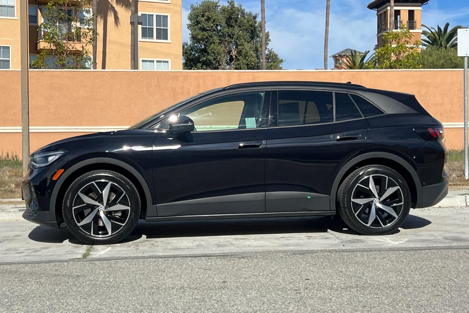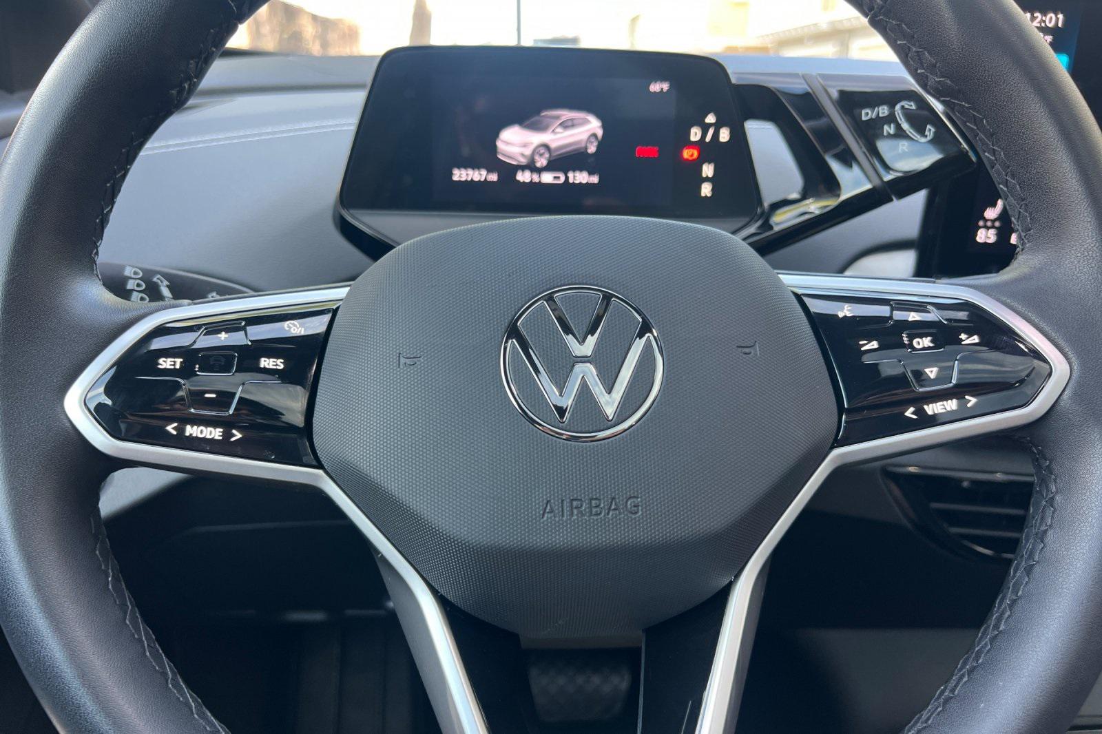 CARFAX One-Owner. Deep Black Pearl 2023 Volkswagen ID.4 Pro S RWD. Powered by a Single-Speed Automatic Electric Motor. Equipped with Heated Front Seats, Perforated V-Tex Leatherette Seating Surfaces, Power driver seat, Power Liftgate, Rear Parking Camera, Spoiler, VW Car-Net Safe & Secure (enrollment needed), and 20"" 5-Spoke 2-Tone Machined Alloy Wheels.Recent Arrival! Odometer is 3366 miles below market average!